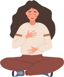 Setze Dich aufrecht hin. Wenn Du möchtest, lege eine Hand auf den Bauch, die andere auf die Brust.